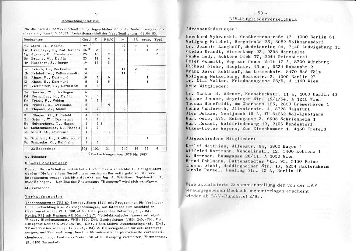 BAV Rundbrief 1/1983 Seite 49-50