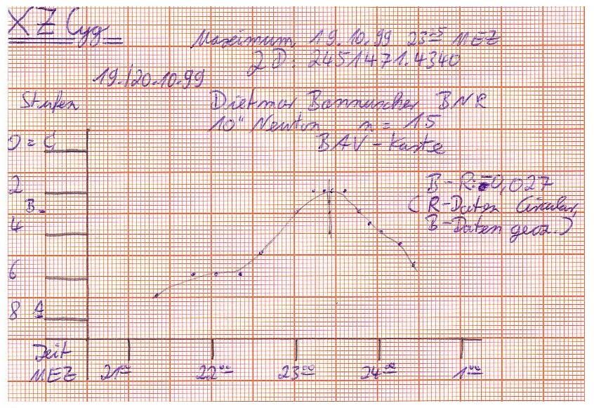 Abb. 2: Lichtkurve des RR-Lyr-Sterns XZ Cyg, Dietmar Bannuscher